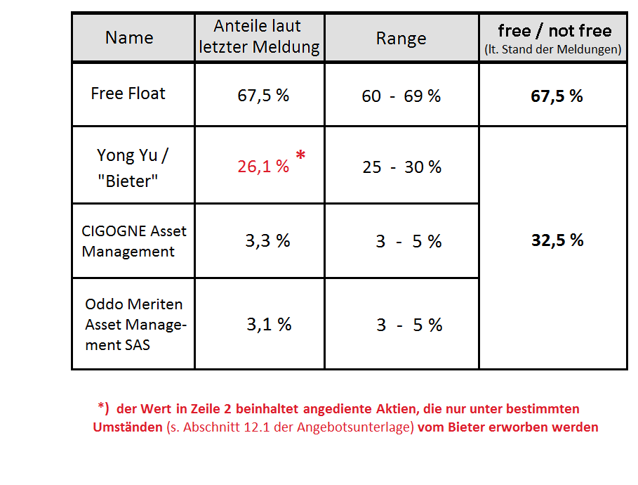 Es ist noch zu früh für eine belastbare Abschätzung, wie hoch die Andienungsquote letztlich (am 7.7.) sein wird. Aber eines ist für mich jetzt schon klar - die hier manchmal anklingenden Ängste vor einer zu niedrigen Quote teile ich nicht. Für mein langfristiges Investment bei Epi sehe ich als einzig ernstzunehmende Gefahr, dass die Bieterin es irgendwie schaffen könnte, mich vor Eintreten der wertsteigernden Faktoren als Aktionär hinauszudrängen. Dass diese kurstreibenden News kommen werden, davon bin ich fest überzeugt – und diese Einschätzung teile ich offenbar mit der Bieterin, die Epi im Eiltempo einkassieren möchte. Da ich jedoch nicht genau sagen kann, wann diese guten Nachrichten publik werden, möchte ich, dass die Bieterin möglichst lange nicht in die Reichweite des Squeeze Out gelangen wird.