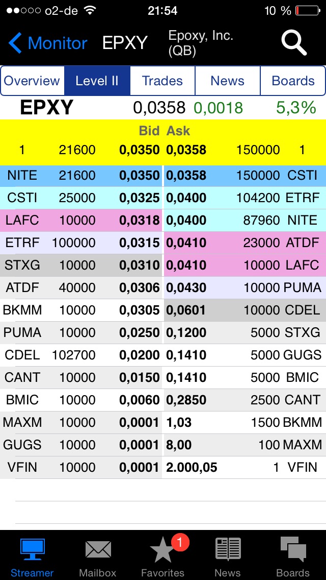 Als wir die Aktie bzw. das Unternehmen im April 2014 entdeckten notierte die Aktie noch bei ca. USD 0,006 ... also bei einem Market Cap von nur etwas mehr als einer Million US-Dollar. Nach und nach stieg der Kurs strategisch mit Substanz gemäss der Unternehmensentwicklung in der ersten Expansionswelle. Epoxy Inc. (EPXY) ist nach wie vor nur ein Startup, doch ein Startup der eine exzellente Performance lieferte, sowohl als Unternehmen als auch als Aktie. Nach und nach stieg der Kurs um nun mehr als 500% innerhalb von nur knapp 8-9 Monaten auf fast ca. USD 0,04 mit einem Market Cap von nun ca USD 6,5 Mio.Epoxy hat starkes finanzielles Backing von erstklassigen Finanzfirmen sodass die massive Expansion im Jahr 2015 zur Gänze finanziert ist. Und neue Finanzfirmen entdecken das Unternehmen laufend wie z.B. erst vor ein paar Wochen die Investmentbank und Asset Managment Firm Carter, Terry & Company. Damit wird der Aktienkurs auch voll unterstützt.