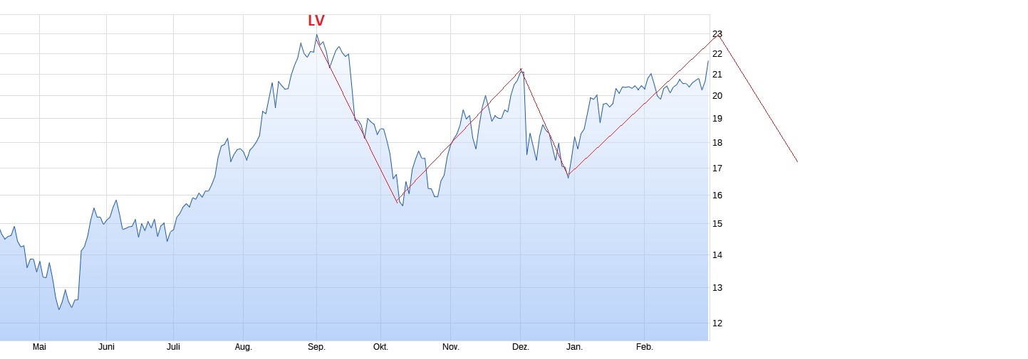 Das war bisher meine Beobachtung und meine Meinung bzgl. des Kurssverlaufes von 23,06 auf 12,4x.