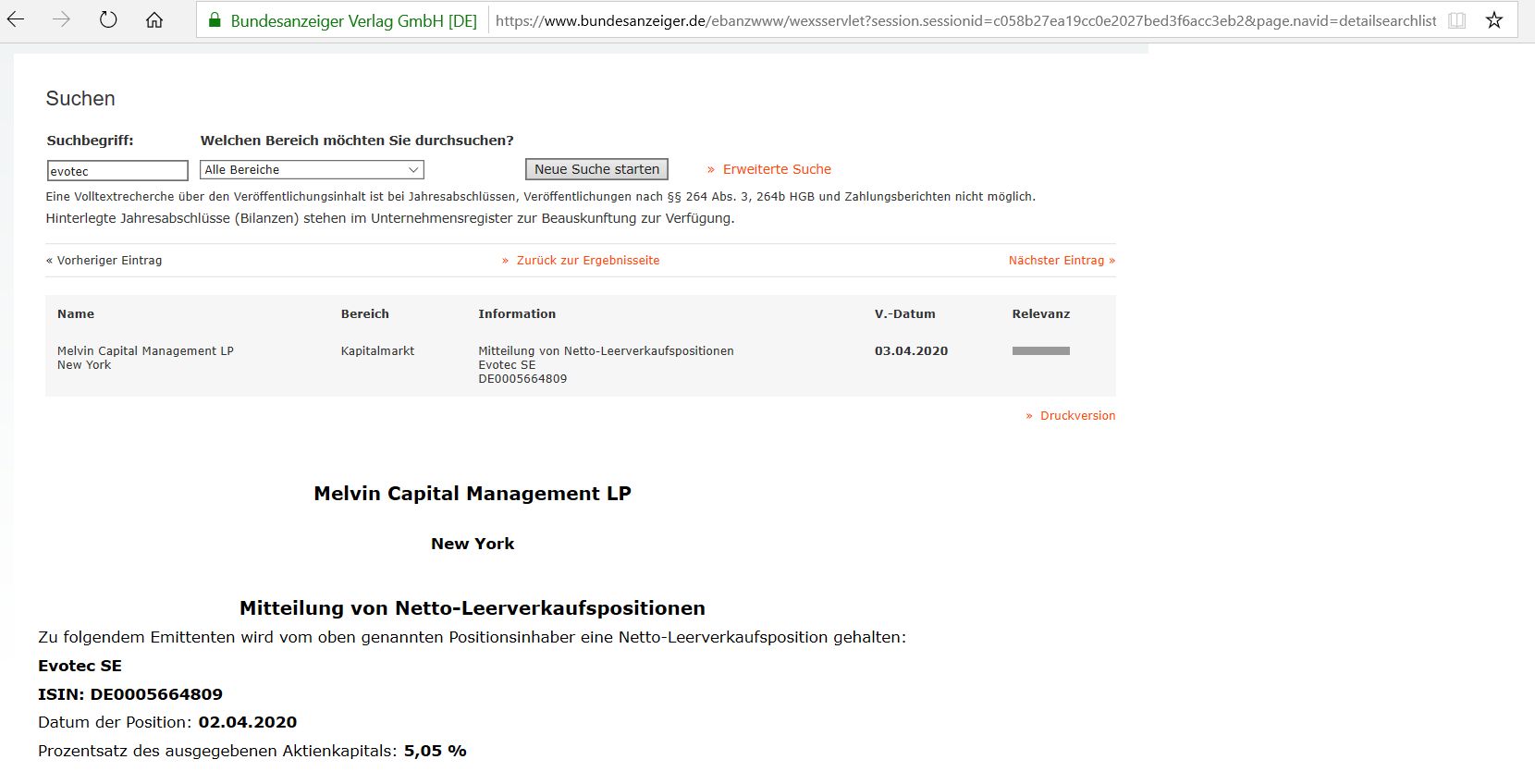 Hamburg, 06. April 2020: Evotec SE (Frankfurter Wertpapierbörse: EVT, MDAX/TecDAX, ISIN: