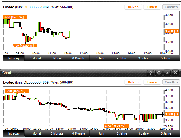 Bei Evo sind wir durch den US-Investor BVF auch anfälliger für Ami-Attacken geworden, siehe die ewigen Schwankungen am nachmittag.
