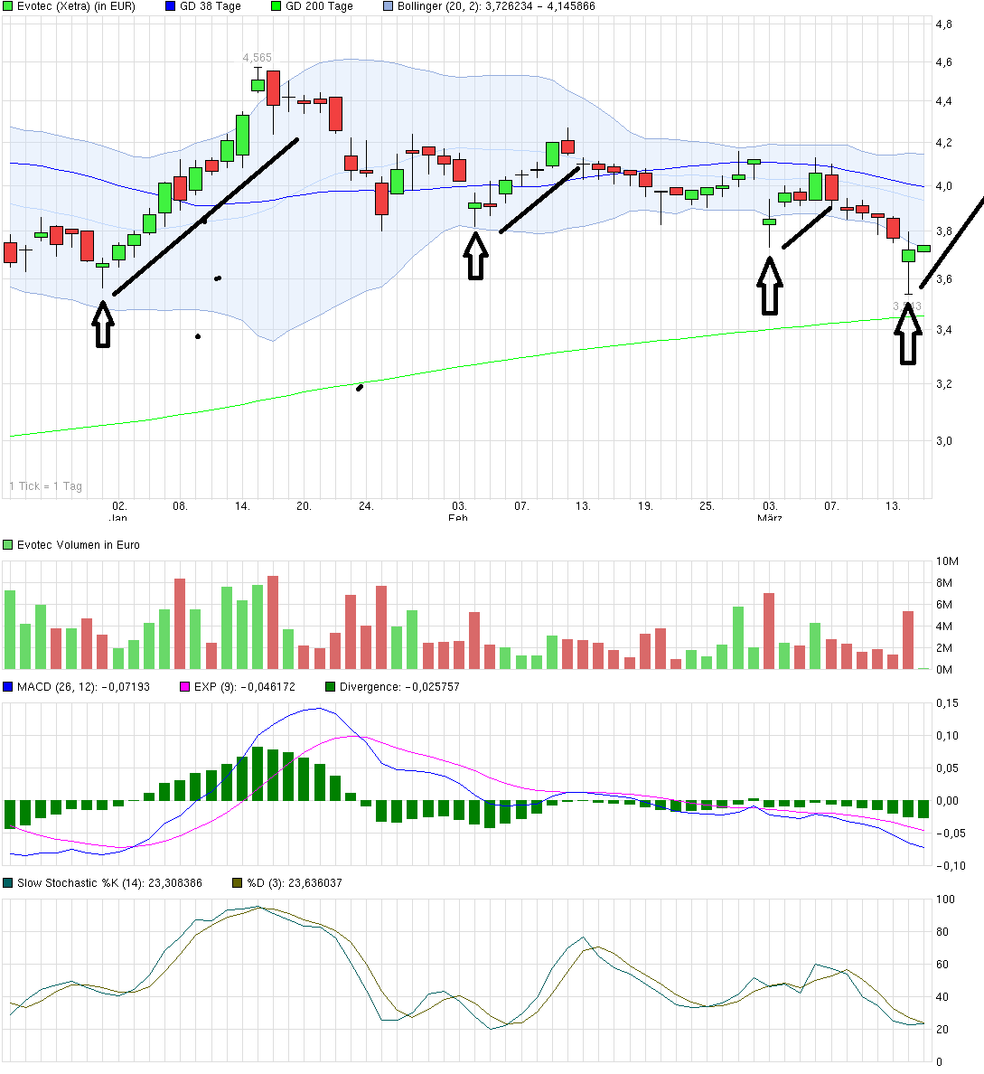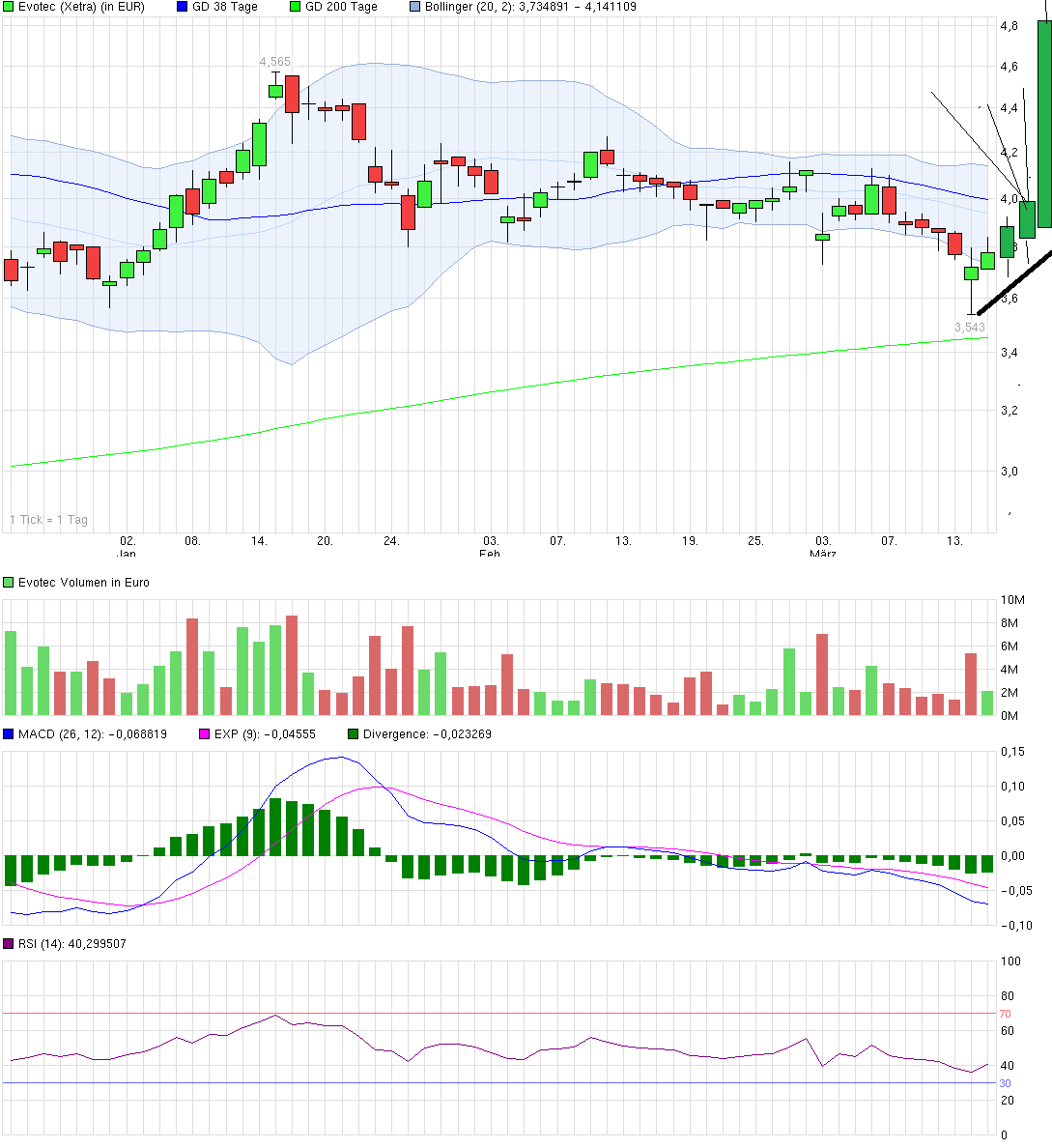 Eine Frage beschäftigt mich schon die ganze Zeit : Warum eigentlich Evotec handeln, bei der das Chartbild nicht "eindeutig" ist und sich zu Vermutungen hinreißen lassen, anstelle Aktien mit vernünftigen CRV handeln ? Wenn man schon deutsche Aktien handeln "muss" (so wie ich in meinem Wikifolio), dann doch bitte Aktien mit aussichtsreichem Chartbild. Letzten Freitag morgen Bayer, Bilfiger, Sky usw gekauft und heute mittag mit jeweils guten 3% Gewinn abgestoßen. (www.wikifolio.com/de/ICHI1-Kumo-Trading-de-Ichimoku-No1)