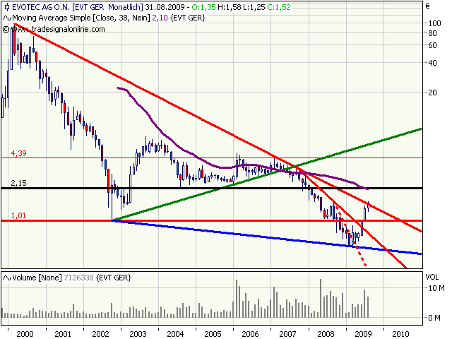 Einer dieser Tranchen-Käufe war kürzlich beim Hamburger Biotechnologieunternehmen Evotec zu beobachten. Vorstandsvorsitzender Werner Lanthaler erwarb zuletzt am 11.08.2009 ein Aktienpaket von 25.000 Anteilen zu einem Kaufpreis von 1,44 Euro je Aktie. Seit März dieses Jahres war der neue Firmenchef des Wirkstoffforschungs- und Wirkstoffentwicklungs-Dienstleisters auf der Käuferseite aktiv. Sein Anteil an Evotec-Aktien ist inzwischen auf 346.120 Papiere im Gesamtvolumen von 260.190,00 Euro angewachsen. Im Schnitt kam der Vorstandsvorsitzende zu einem Preis von 0,75 Euro je Aktie zum Zuge.