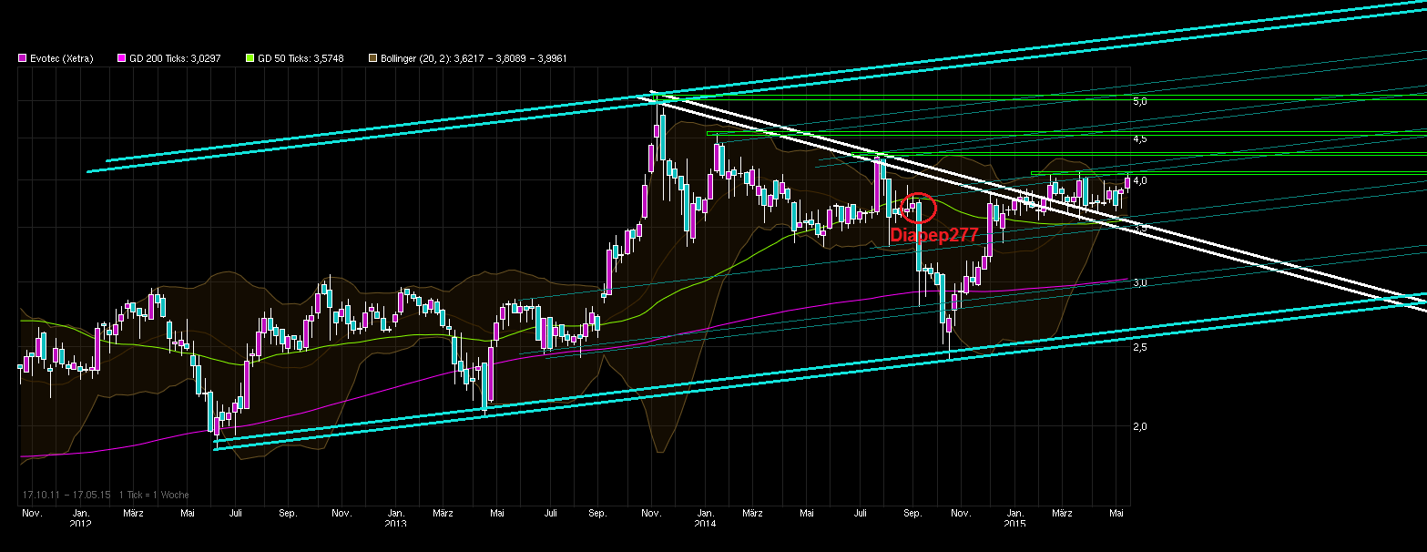 ..... dann ist man klüger, ob sich die Spekulation gelohnt hat auf einen Erfolg bei EVT 302 zu setzen. Tja, je näher die Entscheidung rückt wie EVT 302 in der IIbPhase abgeschnitten hat, desto stärker fangen jetzt die "Zocker" wieder an sich im Vorfeld dieses eventgetriebenen Ereignisses zu positionieren. Bleibt halt die Frage, ob genug Leute noch bereit sind jetzt vorher klar über 4€ zu zahlen, da natürlich die Fallhöhe nach unten damit immer höher wird und der noch zu erreichende Spielraum nach oben kleiner wird, je später man noch aufspringt. Der ganze Kram mit dem Execute-Segment und der Sanofi-Sache ist sicher nett und schön, aber nicht was wirklich den Kurs groß nach oben treiben könnte in den kommenden Jahren oder was die jetzige Bewertung der Aktie rechtfertigt. Das ist alles eher abhängig davon wie erfolgreich weitere Ergebnisse in der Entwicklungspipeline des Innovate Bereichs sein werden durch die einzelnen Phasen. Was passieren kann, wenn ein schon weit fortgeschrittenes Projekt wegfällt, hat man ja letztes Jahr (leidvoll) gesehen bei Diapep277. Momentan ist Evotec bei EVT 302 am weitesten fortgeschritten. Entsprechend wichtig ist es hier jetzt bald gute News zu hören bzgl. der Phase-IIb-Studie. Noch im zweiten Quartal bzw. in der 1. Jahreshälfte 2015 soll es dazu Daten geben laut der jüngsten Adhoc von Evotec. Je nach Ausgang dürfte man da dann im Anschluß einen rapiden Sprung nach oben oder unten machen. Floppt man mit EVT 302, dann könnte man schlimmstenfalls auch wieder zumindest temporär eine 2 vor dem Komma haben beim Kurs, wenn die Frust- und SL-Abverkaufwelle rollt wie bei Diapep277. Hat man Erfolg, um dann in die Phase III gehen zu können, dann dürfte man sich jedoch wohl zügig weiter der 5 vor dem Komma wieder nähern ( falls nicht ein schwarzer Schwan den Gesamtmarkt heimsucht). Von daher sicher eine interessante Börsenphase die in den kommenden Wochen nun ansteht für Spielernaturen. Wer eine größere Evotec-Posi im Depot hat und eigentlich eher eine konservative Natur hat und risikoscheu ist, der sollte überprüfen, ob er sich auf das Wagnis in der der Höhe einlassen will. Soll also keine hinterher jammern er wäre kalt erwischt worden, falls EVT 302 nicht der erwünschten Erfolg haben sollte. Das Risiko und die Chance war hinreichend im Vorfeld bekannt. Hoffen wir mal es geht gut aus für Evotec-Aktionäre. Das endlose rumlullern zwischen 3,60-4,00 kann man langsam nicht mehr sehen. Zeit sich mal über 4€ festzukrallen ;)