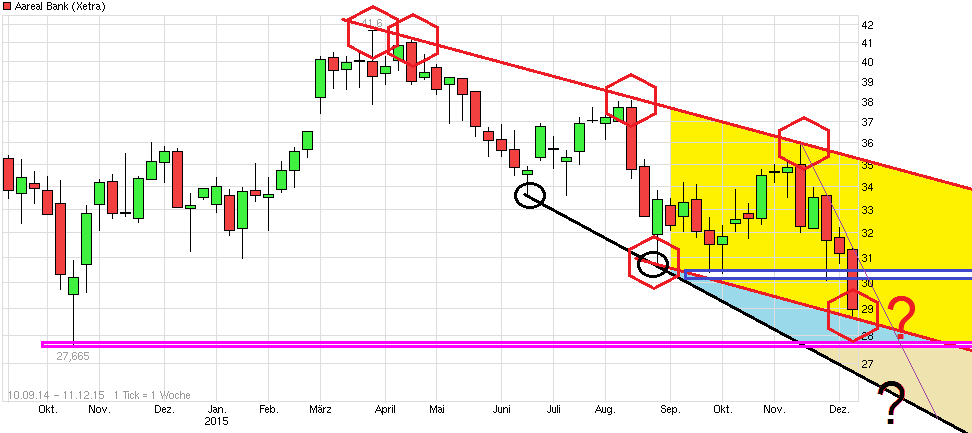 Der Deal ist sicherlich nicht verkehrt. Jedoch sind das eher durch einen einmaligen Tafelsilberverkauf gehobene stille Reserven, d.h. Sondergewinn, und weniger durch das laufende operative Geschäft erzeugter Gewinn der hinzukommt. Wird aber ohnehin erst im kommenden Jahre zum Großteil gewinnwirksam verbucht werden und somit auf den Gewinn von 2015 nur wenig wirken. Das Problem ist zum einen, daß der Gesamtmarkt nach Draghis Underperformance deutlich wegknickt und das zum anderen Banken im allgemeinen unter die Räder kommen und ungefähr so "beliebt" sind wie EON und RWE. Siehe Kurse von der CoBa oder der Deutschen Bank. Da ist Aareal in Sippenhaft. Was alle Banken weiter belastet, daß ist das niedrige Zinsniveau in der Eurozone. Die Verlängerung des QE bis 2017 bedeutet auch, daß die Zinsen länger niedrig bleiben. Gleichzeitig redet Aareal immer bei ihren Investoren-Präsentationen von zunehmendem Wettbewerbsdruck. Von daher könnte dies eben das weitere Wachstum im kommenden Jahr bei der Aareal einbremsen oder die Margen belasten, falls man das nicht nur sagt, um Understatement zu betreiben, um am Ende dann doch positiv zu überraschen in 2016. Jedenfalls ist durch den Kursrückgang die DiviRendite inzwischen deutlich angestiegen und man ist Bereich von ca. 5% angekommen. Wer also 5% Divi ausgeschüttet haben möchte im kommenden Jahr, der könnte Aareal jetzt kaufen (oder eine Freenet um die 30 oder eine Telefonica Deutschland bei ca. 4,80, usw. usw. ). Ist die Frage wieweit die Leute mental schon bei Divis von 2016 sind oder ob man da nicht kurzfristig noch eher auf Dinge schaut wie die FED und die Zinsen nächste Woche, großer Verfallstag nächste Wochen und Window Dressing in den letzten Wochen des Jahres 2015. Also Im Bereich 26/28 sollte man bei der Aareal nicht viel verkehrt machen mit einem Einstieg. Erste Teilposi könnte man auch vielleicht jetzt schon in Erwägung ziehen, wo man jetzt unter 29 aktuell notiert.