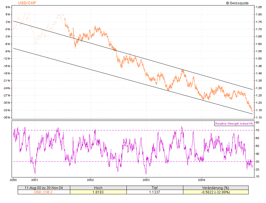 Allzeittiefst vom Dollar gegen Franken war 1.117 (19.04.1995)