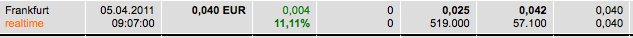 'Bei einem Kurs von 3 Cent ist der Börsenmantel etwa 250.000 Euro wert. Zum Vergleich: Lichtenergiewerke AG (WKN: 662210) wurde heute zeitweise mit über 600.000 Euro bewertet.'