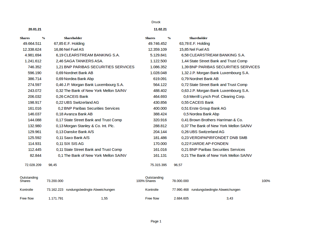 of NOK 22 per share. The proceeds represent partial funding of the company's EUR