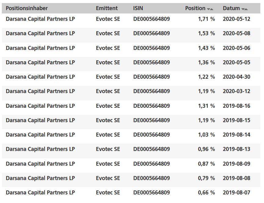 Bei der Liquiditätsposition der Gesellschaft haben sich ebenfalls kaum signifikante Veränderungen ergeben: Diese beziffert Evotec auf 320,7 Millionen Euro nach zuvor 320,0 Millionen Euro per Ende des Jahres 2019.