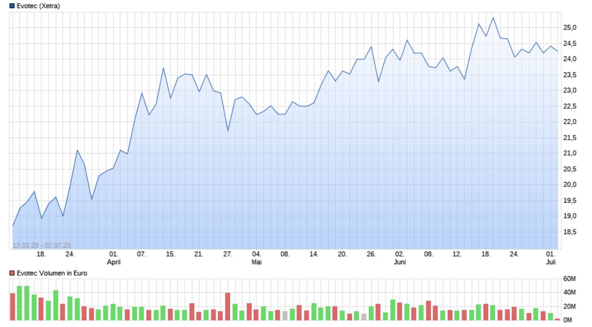 "[...] Gerade hatte die Aktie des Hamburger Biotech-Unternehmens Evotec etwas Fahrt aufgenommen, wird sie auch schon wieder ausgebremst. Schlechte Unternehmensnachrichten sind daran allerdings nicht schuld – im Gegenteil. Evotec konnte man heutigen Mittwoch durchaus wieder mit interessanten News aufwarten. Zudem gab es einen äußerst optimistischen Analystenkommentar der Baader Bank. [...]"