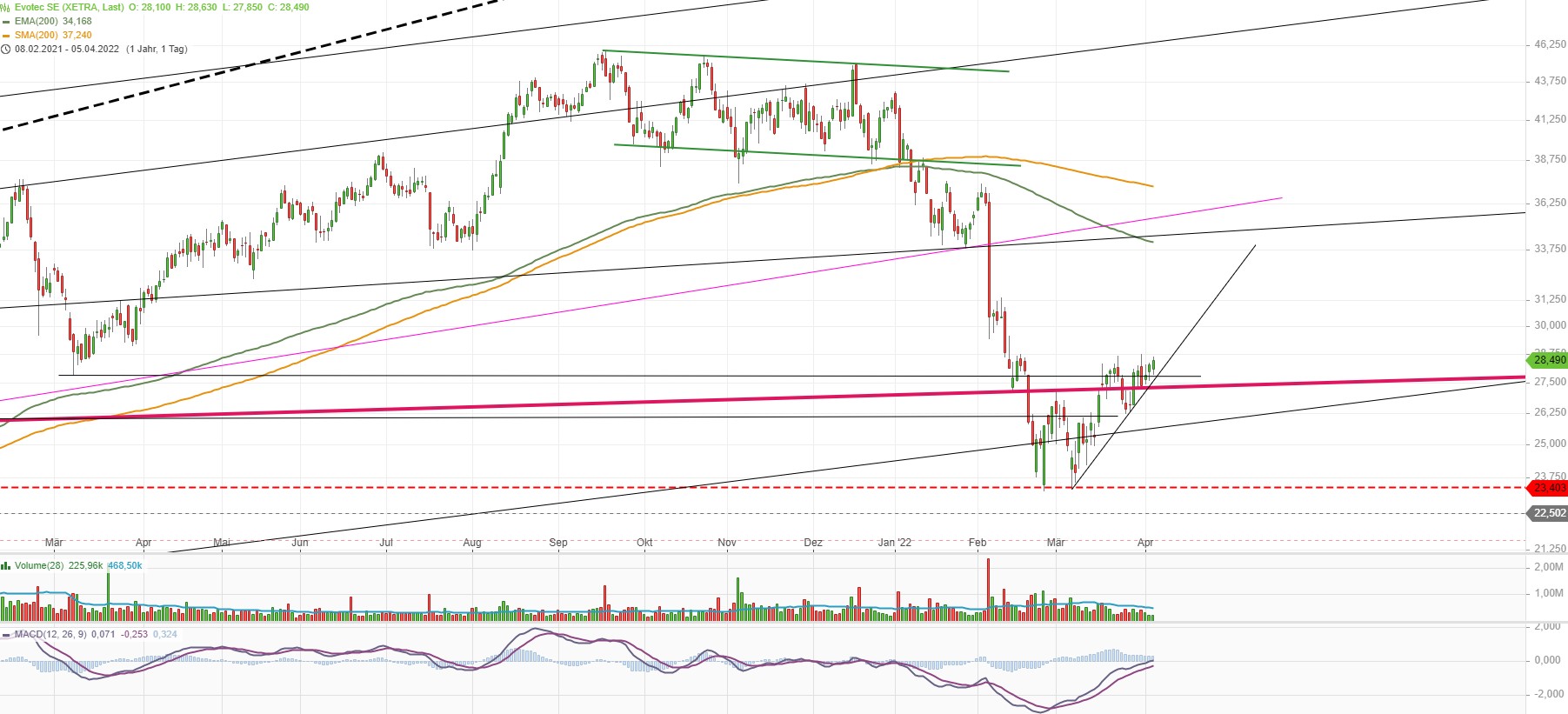 Von diesem Rückschlag hat sich das Papier bis heute nicht erholt. Aktuell ist Evotec nur noch gut 5 Milliarden Euro an der Börse wert und damit im Mittelfeld des MDax weiter abgerutscht. Zuletzt konnte sich die Aktie mit der allgemeinen Markterholung zwar etwas berappeln, mit aktuell gut 28,50 Euro steht seit Jahresbeginn jedoch ein Verlust von rund einem Drittel zu Buche. Die Zwölfmonatsbilanz beträgt mehr als zehn Prozent Minus. Längerfristige Anleger können das eventuell verschmerzen, denn auf Fünfjahressicht beispielsweise hat sich ihr Einsatz gleichwohl nahezu verdreifacht./tav/jcf/stk