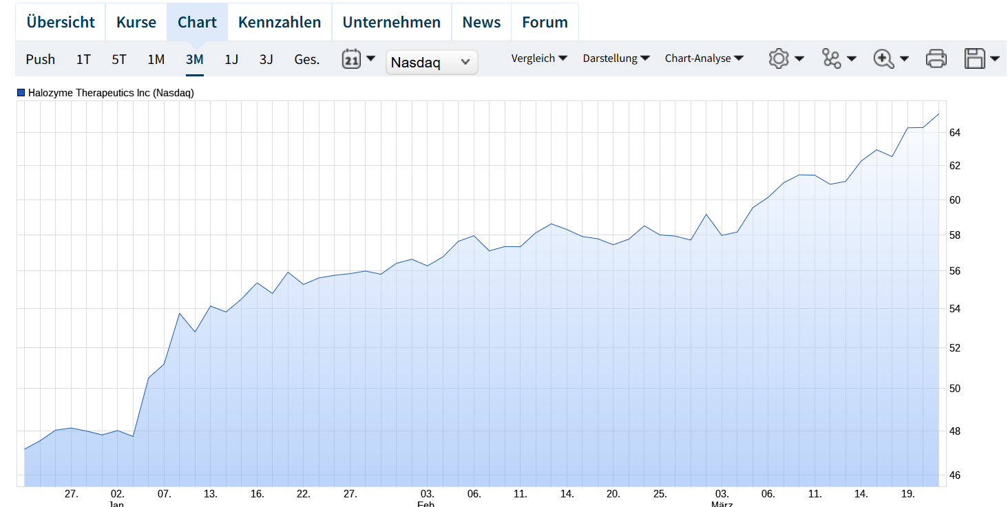Halozyme ist komplett aus dem Blickfeld geraten, wird aber mittlerweile mit MK 7,5 Milliarden € bewertet. Definitiv also keine Pommesbude.