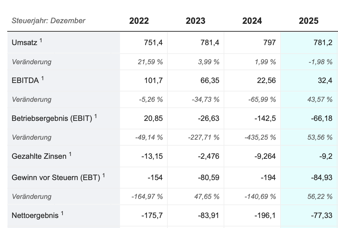 Beim Umsatz stimmt es, bei dem Nettoverlust wird es wohl eher die Hälfte sein. Aber die grundlegende Botschaft, dass die Zahlen insgesamt übel aussehen werden, stimmt schon: