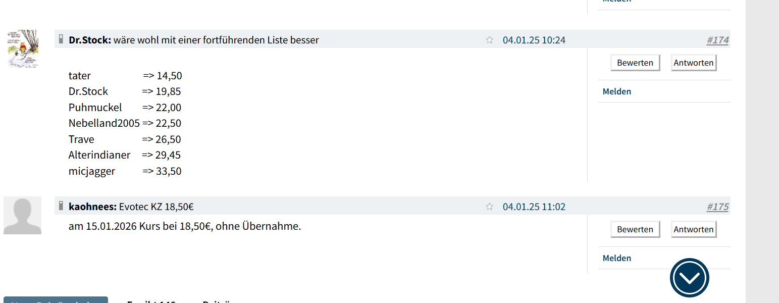 abzunehmen. Aber bisher hält die 5 Euro-Marke. Mal sehen, ob wir zumindest mit über 5 Euro in's neue Jahr gehen.