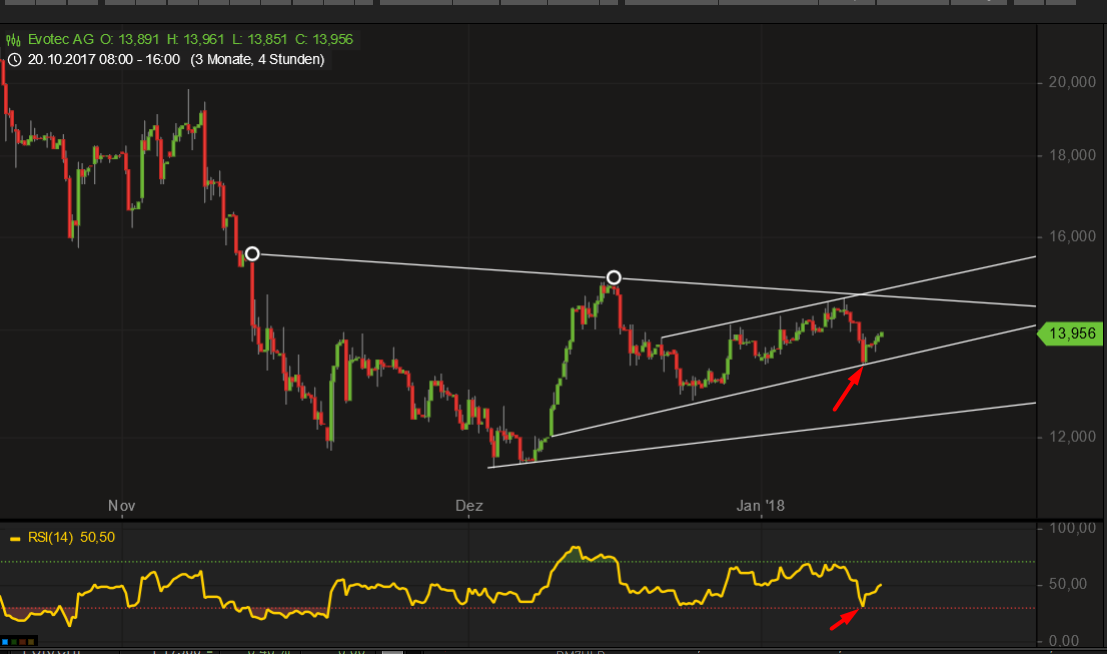 kl rückblick ...kw 1 ist nahe zu perfekt gelaufen ...wie bewiesen habe ich beim erwarteten downer gleich im neuen jahr eingekauft ..der dax ging in den 12,810 er bereich und bischen tiefer...und evo konnte ich zu 13,28 einkaufen (wie bewiesen9..dann entwickelt sich evo gem chart analyse und ich konnte paar gute trades machen auch beiwesen...