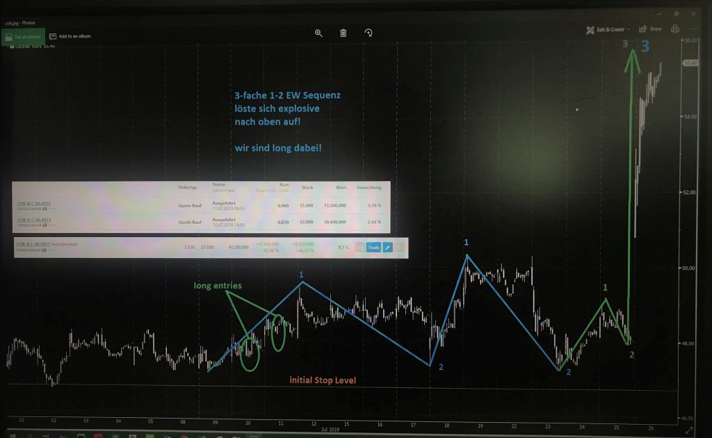 Habe so eben den Ausbruch in der Puma über die 56er Marke mit weiteren Long Trade belohnt. Die Aktie sieht klassisch long mit neuen deutlichen ATHs aus und auch unter EW kann man schöner 1-2 Sequenz Counten.