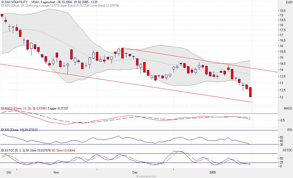 jeder verantwortet seine Aktionen selbst. Aber ich hab mich in letzter Zeit einige Male von Fehlsignalen fehlleiten lassen, deshalb habe ich auf dich verwiesen. Gefühlsmäßig würde ich ja auch down sagen, wenn da nicht das longsignal im Dax und bei den Amis wäre. Auf der anderen Seite bohrt sich der Vdax gerade in den Boden und für mich könnte das im Dax immer noch die Möglichkeit einer übertriebenen C (Ideal 4270) sein, somit ein weiteres Fehlsignal eben. Deshalb auf Verdacht gekauft, der Dax ist sowieso wie Lotterie zur Zeit.