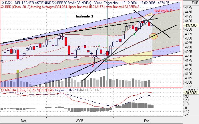 das ehrt mich, obwohl ich auch nur ein Anfänger gegen die Bosse hier bin! Ok hier kurz meine Marken! Denke wir sollten wenigtens nochmal die 4350 testen, besser fürs Gesamtbild wäre ein kurzer Test der 4325! Danach wieder hoch! Alternativ dazu wir klettern über 4385 nachhaltig, dann sollten wir die alten Hochs ansteuern, oder zumindestens das Gap von gestern schliessen.