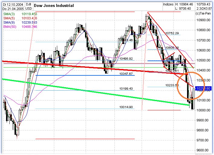 Die gleich zu Handelsbeginn bekannt gegebene Zahl der amerikanischen Erstanträge auf Arbeitslosenhilfe ging in der Woche zum 16. April überraschend deutlich zurück. Sie sank saisonbereinigt um 36.000 auf 296.000, so stark wie zuletzt vor über drei Jahren. Volkswirte hatten einen Rückgang um 4.000 erwartet. Der Chicago Fed National Activity Index (CFNAI) sank im März auf einen Stand von plus 0,11, signalisiert damit aber immer noch ein Wachstum über dem langjährigen Trend. Der Index der Frühindikatoren fiel im März um 0,4 Prozent und damit stärker als von Volkswirten erwartet, die mit einer Abnahme von 0,3 Prozent gerechnet hatten.