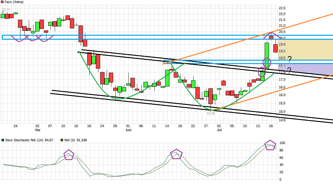 Also ich bin mir fast sicher das es in den nächsten Tagen von akt. 19,70 auf 18,45 runtergehen wird. Von 17,64 auf 19,80 ist für mich ein zu starker Anstieg innerhalb weniger Stunden. Mal sehen was passiert.