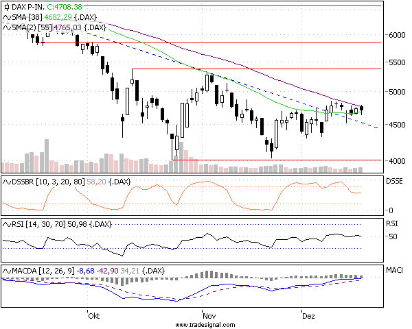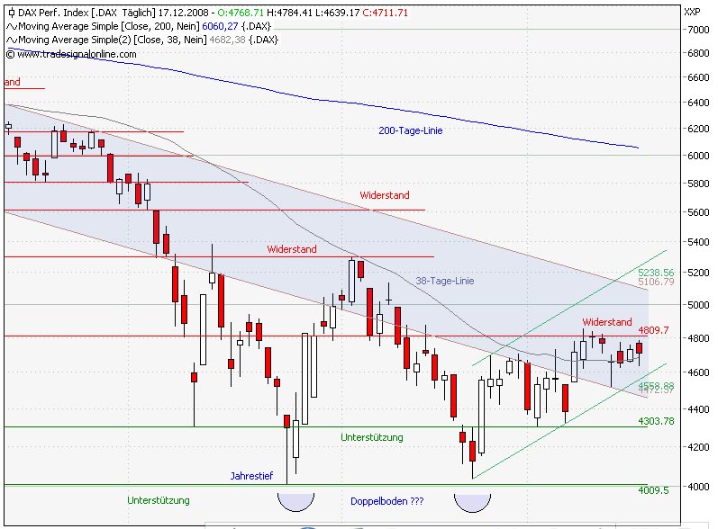Insgesamt waren die Banken für den Aktienmarkt im Jahr 2008 verhalten optimistisch. Unicredit sah den Dax am Jahresende bei 7900 Punkten, die DZ Bank erwartete 8300, die Deutsche Bank ebenfalls. Sal. Oppenheim hielt 8400 Punkte für wahrscheinlich, die Dresdner Bank hoffte auf zwischen 8300 bis 8500, die Commerzbank auf 8500, die Helaba auf 8600, die BHF-Bank auf 8700 und Julius Bär sogar auf 8800 Zähler. An der Spitze lagen die Dekabank mit 9000 und die WGZ Bank mit 10.000 Punkten. Zum Vergleich: Der Dax-Schlusstand 2007 lag bei 8067 Punkten.
