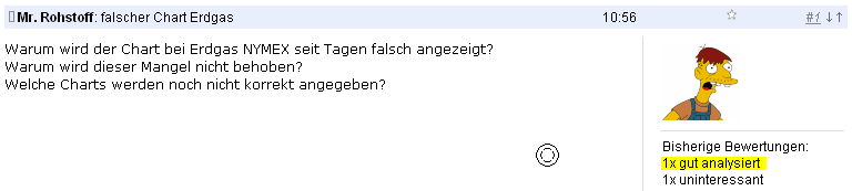 Warum wird der Chart bei Erdgas NYMEX seit Tagen falsch angezeigt?