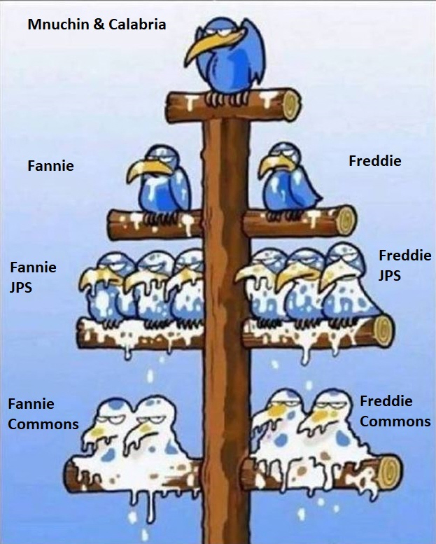 Das Brookings-Papier von Mike Calhoun und Lou Ranieri zur Zukunft von Fannie und Freddie plädiert für eine Streichung der (bereits per NWS abgezahlten) Senior Preferred Shares (SPS; Regierungskredit von 2008). Nach Wegfall der SPS können sich Fannie und Freddie erfolgreich Fremdkapital beschaffen....
