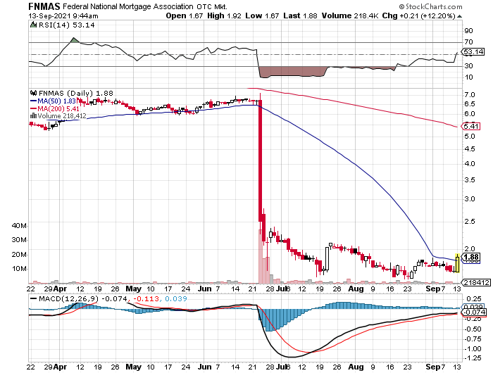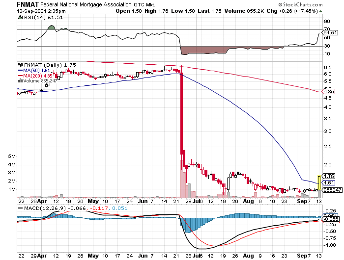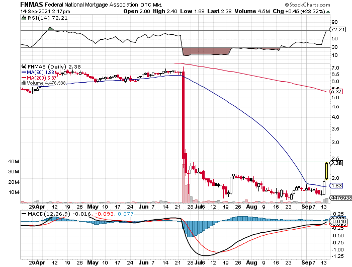 Dass an dieser Meldung (unten in Engl.) "etwas dran ist", erkennt man u. a. daran, dass gestern speziell die JPS von FnF bei hohem Volumen meist zweistellig gestiegen sind (siehe Charts in # 560, 561, 567). Die Stämme (FNMA) erholten sich um 3 % (Fannie) und 1,6 % (Freddie).