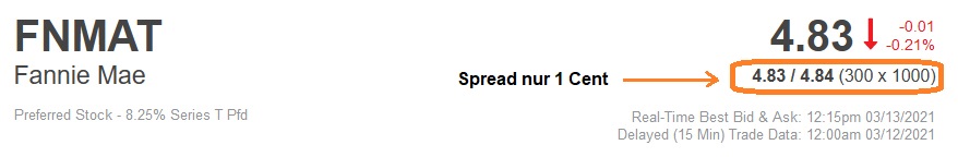 Letzteres könnte für ihn aber böse ins Auge gehen, wenn z. B. heute um 14 Uhr MEZ (8 Uhr US-Ostküstenzeit) eine außergerichtliche Einigung ankündigt würde*. Dann wäre FNMAS vermutlich schnell bei 25 Dollar (entsprechend 20 Euro), und der Marketmaker würde bis zu 14,70 Euro Verlust machen.