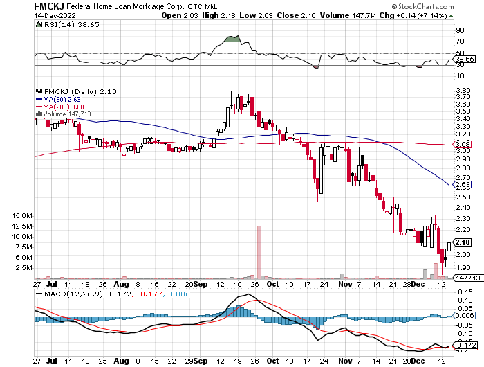Doch dieses Klischee zeigt auch ein zwingendes Argument für die Regierung Biden auf, den Banken nicht weiterhin zu geben, was sie wollen, und stattdessen "das Richtige" für Fannie und Freddie sowie für Hauskäufer mit niedrigem und mittlerem Einkommen zu tun. Nachdem das Finanzministerium die FHFA angewiesen hatte, Fannie und Freddie unter Zwangsverwaltung zu stellen, gab es sich selbst Warrants für 79,9 Prozent der Stammaktien der beiden Unternehmen. Heute haben diese Optionsscheine einen sehr geringen Wert, nämlich nur 3,2 Milliarden Dollar, weil - angesichts der gegenwärtigen Politik der Regierung, Anspruch auf mehr als das gesamte Nettovermögen von Fannie und Freddie zu erheben und sie für die nächsten zwei Jahrzehnte in unangemessener Weise in der Zwangsverwaltung gefangen zu halten - die Unternehmen sehr wenig Wert haben, wobei ihre Aktienkurse gestern im Durchschnitt 44 Cent betrugen.