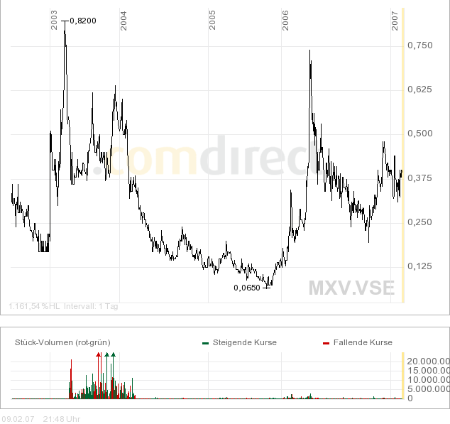 Und noch ein Gedanke beschäftigt mich. Wie es den Anschein hat, wird MXV ja die Verpflichtung auf Larder Lake nachkommen und irgendwann 60% der Gewinne einstreichen können. Des Weiteren will ja MXV in diesem Jahr 5,6 Mio. CAD für Bohrprogramme auf (Hope Bay / Larder Lake / Excelsior Springs / Keystone ) aufwenden. Was für ein Junior Explorer in diesem Stadium eine sehr hohe Summe darstellt. Außerdem sollen ja auch noch weitere Gebiete in Kanada / Mexiko / USA dazugekauft werden. Da bei MXV die Prioritäten dieses Jahr nach Aussagen von Mr. Graybeal (im Dezember getätigt) liegen: