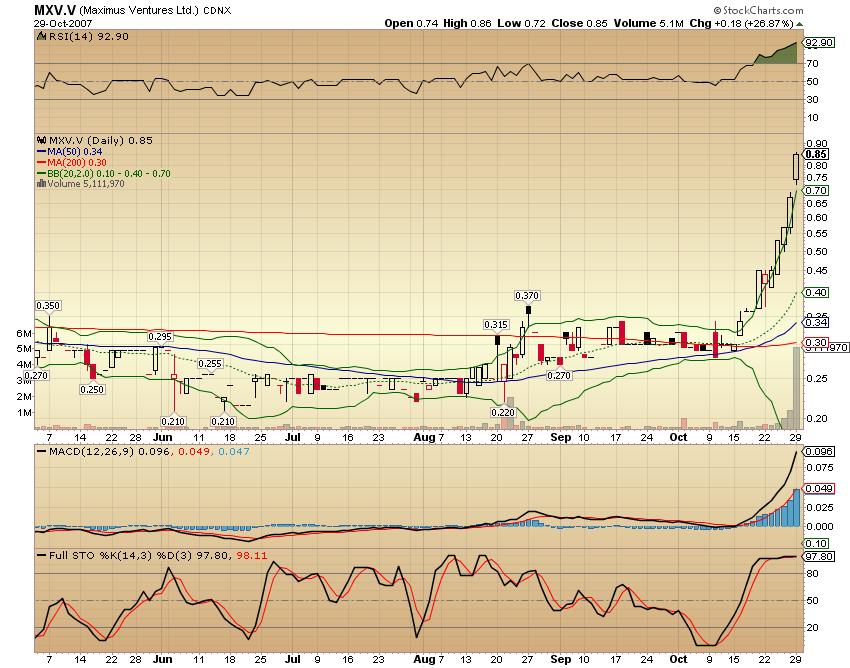 LONGUEUIL, QUEBEC AND TORONTO, ONTARIO--(Marketwire - Nov. 1, 2007) - Maximus Ventures Ltd. ("Maximus") (TSX VENTURE:MXV) and NFX Gold Inc. ("NFX") (TSX VENTURE:NFX) are pleased to announce the discovery of a new high grade gold zone at the Larder Lake Gold Project. Hole