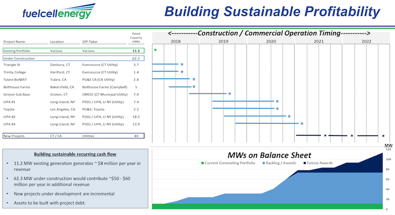 Wenn man die Präsentation aus dem Q2/17 CC ernst nehmen kann, wurde dort auf der anliegenden Folie dargestellt, dass FCE beim Verkauf von 45MW BZ-Kraftwerkskapazitäten oder bei einer Stromproduktion von 60MW jährlich profitabel sein würde.