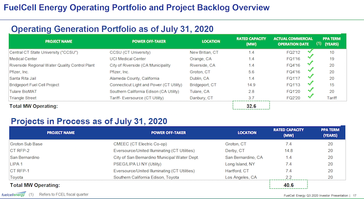 Demnach geht die Anlage in der Groton Naval Base im Februar '21 ans Netz. Vorher wird es allerdings noch in diesem Jahr eine 10 Mio $ Steuererstattung für FCE geben, die dann anderen Projekte zukommen kann.