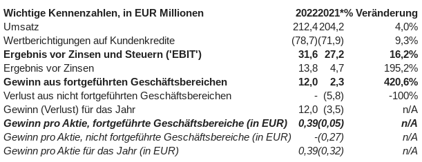 Wir sind der Ansicht, dass Multitude mit der Umsetzung seiner Strategie, sich auf die profitabelsten Märkte zu konzentrieren, den Kundenstamm im Einlagengeschäft zu erweitern, die SweepBank einzuführen und die Profitabilität zu verbessern, auf einem guten Weg ist. Mit dem Übertreffen des eigenen EBIT-Ziels 2022 von EUR 30 Mio. und einem starken Ertragsswing bestätigte das Management seine EBIT-Ziele 2023e von EUR 45 Mio. (Schätzung AlsterResearch: EUR 43,8 Mio.). Nach einer erfolgreichen Refinanzierung der Anleihe im Jahr 2022, die bei Multitude planmäßig verläuft, erhöht sich unser Vertrauen in die Equity Story des Unternehmens. Wir bestätigen daher sowohl unser BUY-Rating als auch unser Kursziel von EUR 11,10.
