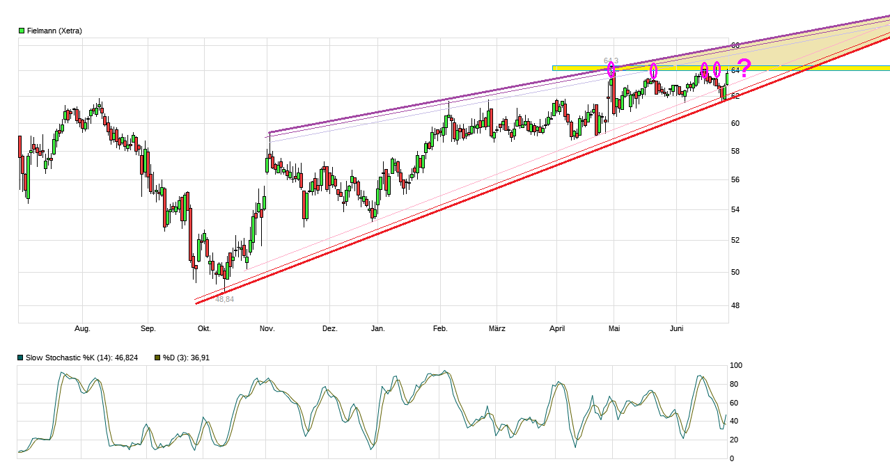 Hatte sich gestern schon andeutet, daß hier erstmal wenig Jubel über die Zahlen&Prognosen ausbricht. Nachdem es gestern direkt nach den Zahlen strikt südwärts ging, bin ich gestern bei 66€ entsprechend ausgestoppt worden. Scheinbar waren die heftigen, aber fundamental newslosen Anstiege seit Ende Juni in erster Linie dann doch getrieben davon, daß gewissen Investoren die bisherigen Prognosen wohl zu konservativ erschienen, besonders was die Gewinne angeht. Da wurde also verstärkt gewettet, daß man jetzt zum Hj.1 doch etwas positiv überrascht und das ging nicht auf. Umsatzseitig war es ja ok. , aber Gewinn ist noch wichtiger. Viele instit. Investoren reagieren nach Zahlen oftmal erst mit einem Tag Verzögerung, da sie die Dinge erstmal noch etwas genauer analysieren, Fragen an das Unternehmen stellen und dann erst die Entscheidungen treffen abzubauen oder nicht. Entsprechend kommt heute nach dem gestrigen schnellen Abgang der kleinen Trader nochmal die nächste Welle aus eher instit. Kreisen. Fielmann hält zwar an der bisherigen Prognose fest, allerdings hat sich der Gewinn zuletzt etwas schwächer entwickelt als erhofft. Von daher könnte man natürlich fragen, wie sicher es noch erscheint, daß die Prognose durchgehalten werden kann durch ganz 2019, wenn sich diese jüngste Tendenz so fortsetzen sollte. Entsprechend ist man erstmal wieder vorsichtig geworden. Jetzt ist die Frage, ob man sich bei dem Rücksetzer damit begnügt wieder in der bekannten Range zu bleiben in der man in den beiden Monaten bevor dem jüngsten Wettrennen war (also irgendwo im Bereich von ca. 61,00/61,50 - 64,00/64,50) oder diese Etage nochmal verlassen wird, um noch tiefer zu konsolidieren. Kommt vielleicht auch etwas darauf an wie gut DAX&Co. jetzt weiter durch den Sommer kommen und die Anlegerstimmung dann ist. War natürlich wenig hilfreich, daß jetzt parallel mit den Zahlen auch die deutsche Gesamtbörse flügellahm ist. Ich bin etwas unsicher nach den Zahlen wie ich das bei Fielmann jetzt weiter einschätzen soll. Wird man die Gewinnprognose wirklich halten können? Werden die verstärkten Investitonen wirklich das Gewinnwachstum hinreichend und auch bald wieder ankurbeln oder werden die gegenwärtigen kostemäßigen Belastungen am Ende nicht hinreichend fruchten? Kann ja sein der Markt reagiert jetzt überempfindlich nachdem man vor zu sorglos war. Ich bleibe jetzt erstmal noch etwas weiter an der Seitenlinie solange die Newslage sich nicht ändert und der Chart auch nicht klare Kaufsignale wieder erzeugt. Kann sein, daß sich jetzt erstmal eine zähe Hängepartie entwickeln wird bis zu den Q.3 Zahlen und dann erst klarer wird, ob der leichte Gewinndämpfer im 2.Q. nur temporär war oder sich durch 2019 weiter durchziehen wird.