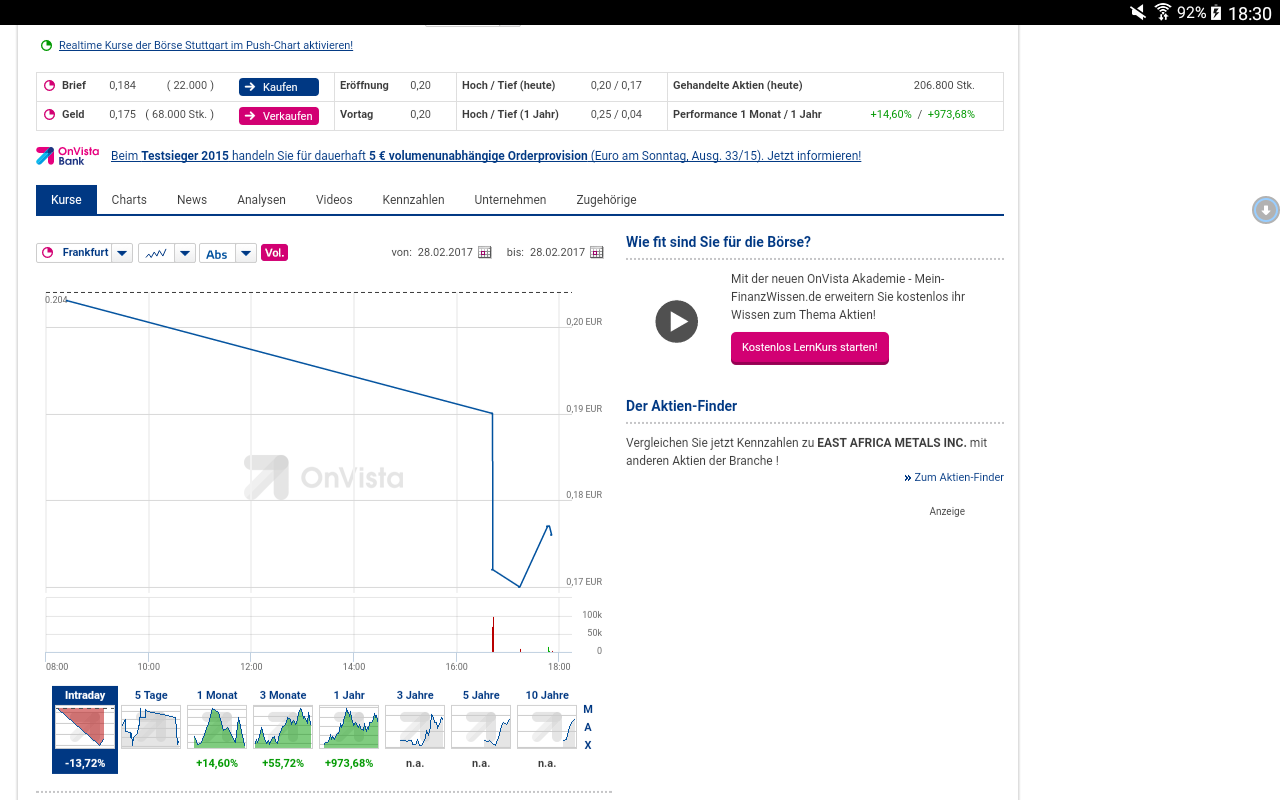VANCOUVER (BRITISH COLUMBIA), 22. Februar 2017. East Africa Metals Inc. (TSX VENTURE: EAM) (East Africa oder das Unternehmen) freut sich, ein Update seiner laufenden Explorationen und Ressourcendefinitionen bei den Projekten Adyabo und Harvest in Äthiopien bekannt zu geben.