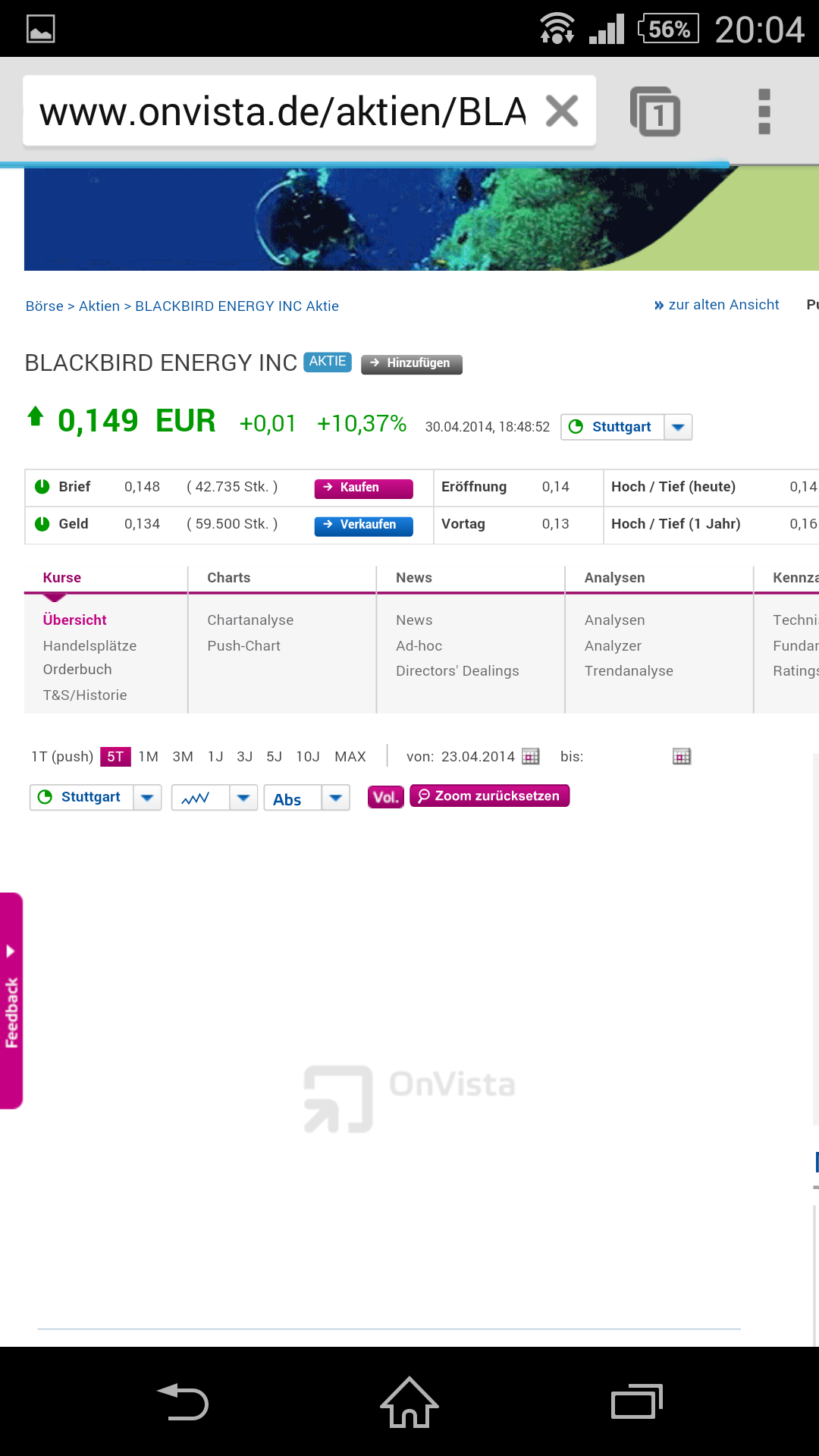 letztes bid 54.000 Stücke zu 0,210/ ask 5000 Stücke zu 0,215