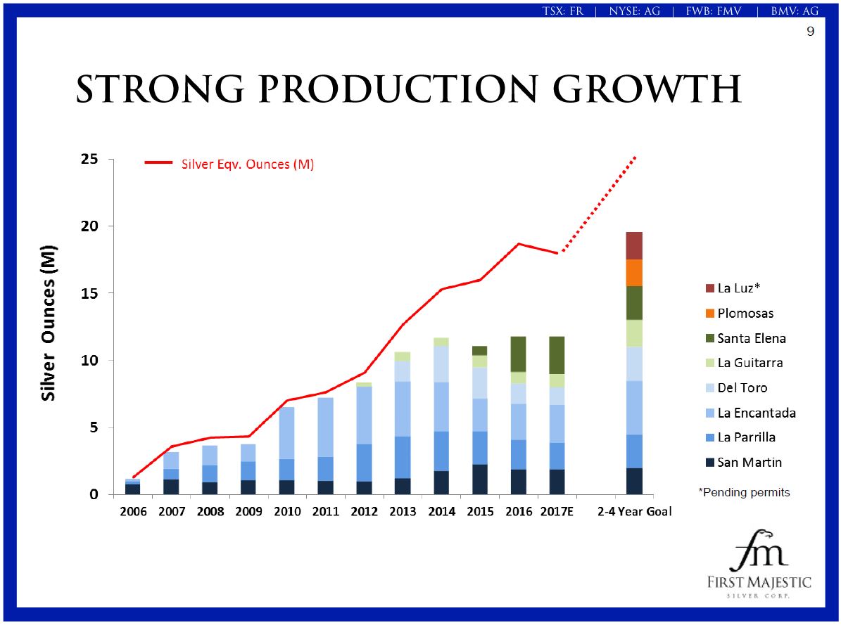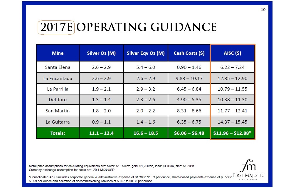 AISC of $10.79 per payable silver ounce, representing a 20% decrease compared to 2015.