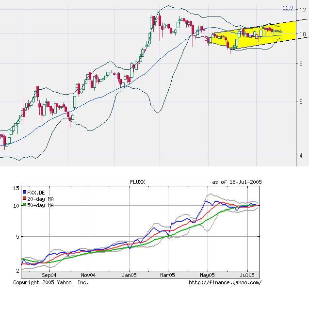 so schwer war die Lage für mich noch nie zu beurteilen - ich schaue mir morgen Fluxx und Lycos genau an und tausche ggf. noch das halbe Depot kurzerhand von Fluxx in Lycos Europe (932728), wo charttechnisch die Angelegenheit seit ca. zwei Wochen ziemlich eindeutig war und ist ;-) - mit dem Londoner Anschlag ist für mich bei Fluxx, entgegen der allgemeinen Entwicklung, ein Kursbreak eingetreten, der so gesehen unerklärlich ist, weil Fluxx war drauf und dran, den KE-Abwärtstrend zu verlassen
