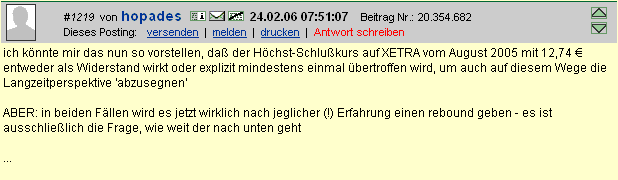 Meine Schätzung leigt bei 15-20 Euro in 2006.