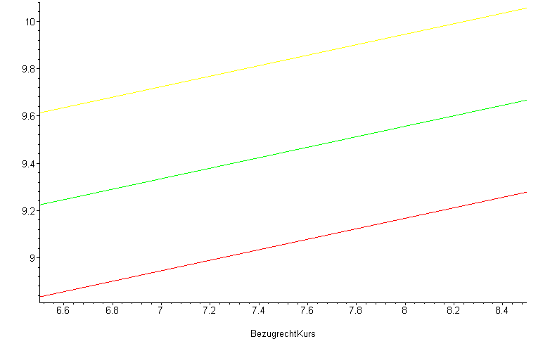Sehen sid die Chart an....das was es zeigrt NullKurs abhängig von BezugrechtKurs, ... hochste Linie ist wenn ich bei 9.50 Euro 1000 verkauft hätte, mittlere beim 10 Euro und tiefste ist beim 10.50 Euro.