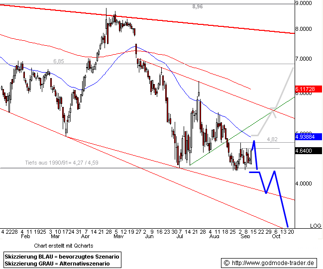 Bekanntgabe der Quartalszahlen, die Aktie wurde erneut abverkauft und stabilisiert sich nun erneut oberhalb der 4,27 $ Marke. Eine saubere Bodenbildung ist bislang nicht zu erkennen. Das kurzfristige Chartbild hat leicht bärische Tendenz, das mittelfristige ist sehr bärisch.