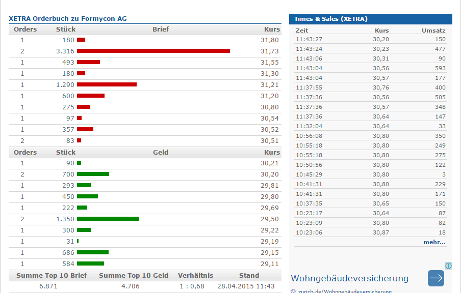 Gut, leider befanden sich die teuersten Stücke im Verkauf gleich einen dreiviertel Euro tiefer. Diese Stücke wurden komplett zu diesem tiefen Preis getauscht, wodurch der Preis der Aktie genau den Wert annahm.