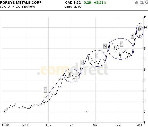 wie Blue Pearl und Forsys Metals schon nach den ersten 20, 50 oder 100 Prozent Kursgewinn