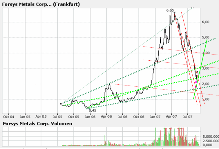 In den letzten drei Tagen gab es zwei erstaunliche Entwicklungen im Rohstoffbereich: 1.) Die Eisenerzpreise auf dem Spot-Markt explodieren! In China wurde Iron Ore mit 140 USD/t gehandelt, das ist mittlerweile 87 % über den 75 USD/t vom Jahresbeginn. Dazu muss man wissen, dass es nur in China einen wirklichen Markt für Eisenerz gibt. Alle anderen Verträge sind meist auf ein Jahr fest geschlossen. Dieser jüngste dramatische Preisanstieg bringt nun vor allem viele kleinere Stahlwerke in China in Bedrängnis. Es sind panikartige Käufe zu beobachten. 2.) Die Frachtkosten sind in den letzten Tagen auf neue Rekordhöhen gestiegen! Um Kohle oder Eisenerz nach China zu schiffen, muss soviel bezahlt werden wie noch nie! Der Eisenerz-Spotpreis dürfte auch aufgrund dieser Entwicklung stark gestiegen sein. Der Baltic Index (übrigens einer der Favoriten von Alen Greenspan, um die Befindlichkeit der Weltwirtschaft zu messen) ist auf einen Rekord von 7.319 Punkten gesprungen. Für einen 170.000 Tonen Tanker muss nun das doppelte an Miete/Leasing bezahlt werden, wie vor 12 Monaten! Die Frage ist daher berechtigt: Sieht so die Welt vor einer Rezession aus? Wird das Kreditproblem, welches zweifelsohne vorhanden ist und sich noch zuspitzt, womöglich kaum Auswirkungen auf die „reale“ Wirtschaft, insbesondere in China, Indien und den anderen boomenden Märkten der (Ex-)Emerging Markets haben? Oder bleibt das Problem vor allem auf Banken und die USA beschränkt? Aktuelle Marktlage: Die Märkte sind in der „Zange“. Auf der einen Seite weiß niemand so recht, wie die gewaltigen Schieflagen im Hypothekenbereich sich mittelfristig (auf Sicht von 6-10 Monaten) auswirken werden, auf der anderen Seite läuft die Weltwirtschaft ungehindert robust. Die neuesten Daten aus dem Rohstoffbereich deuten sogar auf einen ungeahnten Boom hin. Trotzdem wurden gerade Rohstoffwerte abgestraft wie kaum eine andere Anlageklasse. Hier laufen Erwartungen und Wirklichkeit also völlig auseinander und man wird in den nächsten Monaten sehen, wer sich wem wieder annähert. Weltklasse-Eisenerz-Projekte im Explorationsstadium, wie sie Advanced Exploration, Cuervo Resources oder Baffinland besitzen, bleiben nach wie vor die interessantesten „Watchlisten-Projekte“ (und Aktien) die es im Eisenerzbereich oder gar im gesamten Rohstoffsektor gibt. Denn die Chinesen werden bei dieser Preisentwicklung sich bald auch aggressiv an Eisenerz-Explorationsprojekten beteiligen. Im November beginnt auch die neue Preisverhandlungsrunde der großen drei Eisenerzproduzenten (Rio Tinto, BHP und CVRD). Dass diese erneut einen saftigen Aufschlag fordern, dürfte angesichts der nun laufenden Entwicklung klar sein. Davon kann sich China eigentlich nur lösen, wenn man sich direkt an der Exploration beteiligt. Bedenken Sie auch die inflationäre Wirkung der jüngsten Entwicklung! Stark gestiegene Frachtpreise werden sich mittelfristig in weiter steigenden Preisen (für alle möglichen Artikel) auswirken. Betrachtet man die gefallenen Rohstofftitel (trotz der oben genannten robusten Indikatoren) als Vorindikator für die Weltwirtschaft, dann spielen die Märkte aber eine bevorstehende Weltrezession, zumindest aber eine starke Rezession in den USA. Es gibt nun zwei mögliche Szenarien: 1.) Die Märkte haben recht mit dieser Extremeinschätzung, welche die Rohstofftitel vorhersagen. Dann stehen jedoch den bisher noch gut gehaltenen Standardwerten in den nächsten Monaten ebenfalls sehr ungemütliche Zeiten bevor! Dann kann man getrost in jede Erholung weiter Liquidität aufbauen, sowie DAX-Puts und Puts auf Finanzaktien halten und diese nicht nur als kurzfristige Absicherungsspekulation betrachten. Im Gegenteil: Wird das zur Realität, was die Kurse der Rohstofftitel, insbesondere erstklassiger Explorer wie Mustang, Aquila, Powertech Uranium, Forsys, Commerce Resources, Cuervo Resources, Sabina Silver, Corriente Resources etc. implizieren, dann können Sie getrost alle Werte shorten. Zum Beispiel Thyssen, Linde, MAN, die Automobilwerte und die Konsumwerte! 2.) Es kommt alles nicht so schlimm und es gibt keine (globale) Rezession (sondern wohl nur in den USA), wie es uns die Rohstofftitel aufzeigen. Dann kann man jedoch nur zu einem Schluss kommen. Es wird auch in Zukunft weiter eine hohe Nachfrage nach Rohstoffen vorhanden sein (diese wird sogar in einer US-Rezession weiter stark vorhanden sein, da ja die Wirtschaftstätigkeit vor allem in Asien ja nicht zum Erliegen kommt). Ist man jedoch dieser Meinung, dann muss man unweigerlich zur Erkenntnis kommen, dass dieser Crash bei den meisten Rohstofftiteln und Explorern eine maßlose Übertreibung fernab der Realitäten auf diesem Planeten darstellt (siehe die eingangs erwähnten Fakten zu den Frachtkosten und den Eisenerzpreisen am Spotmarkt!). Wir favorisieren Variante 2! Nachdem wir die letzten Tage mit zahlreichen Rohstoffhändlern, Fondsmanagern und Investmentbankern in Kanada und London telefoniert haben, sehen wir derzeit Szenario 2 als wahrscheinlicher an. Denn wenn die Märkte an eine globale Rezession glauben würden, würden auch die Rohstoffpreise stärker korrigieren. Sieht man sich jedoch die Industriemetalle als wohl besten Indikator an, dann sind diese immer noch auf gesunden Niveaus, die nicht auf ein Hard Landing der Weltwirtschaft hindeuten. Somit wird die These, dass es sich beim Ausverkauf der Rohstoff– und Junior-Mining-Aktien um eine Verkettung von Sonderfaktoren (wie Margin Calls, Liquiditätskrise, Panik aufgrund von Investments einzelner Firmen in ABS-Papieren) handelte, immer realistischer. Zu Einzelaktien bleibt nur soviel zu sagen: Wer der Meinung ist, dass die Weltwirtschaft nicht von den aktuellen Kreditproblemen hart getroffen wird, für den beginnt in diesen Tagen die Zeit des vorsichtigen Einsammelns. Aktien wie Forsys (Uran), Mustang Minerals (Nickel), Aquila (Zink/Gold), Commerce Resources (seltene Metalle Niob und Tantal) oder First Majestic Silver (Silber, heut
