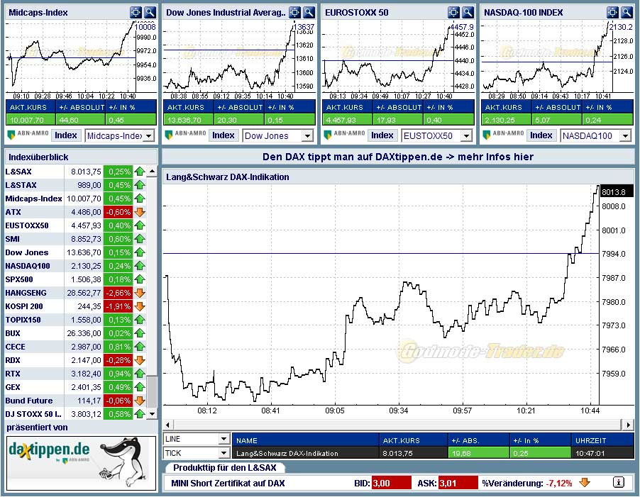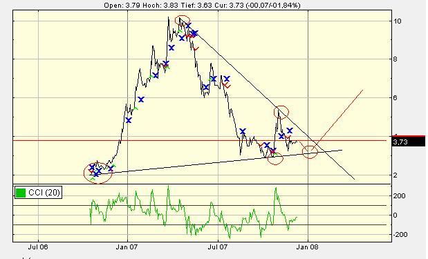 "Kursmanipulation und Gegenmaßnahmen", ...angenommen, du kaufst 1000 Aktien eines Stocks. der manipulative MM (market maker), der diesen Trade für dich ausführt, kann diese 1000 Aktien sofort leihen und bereits einen Trade später gegen dich einsetzen, indem er diese 1000 Aktien ins bid verkauft, also billiger. da die Umsätze erst nach 3 tagen gecovert werden müssen (also abgerechnet), kann der MM mit dem gesamten (kauf)Volumen ins bid gehen und somit eigentlich kaufwillige abhalten, weil die sich natürlich fragen " wer verkauft denn da zu diesen Schweinepreisen?" , was dazu führen kann, dass trotz guter News ein stock nicht steigt oder sogar fällt. Wenn das von mehreren MM betrieben wird, ergibt sich im Handel ein verzerrtes bild der Realität. eigentlich ist der stock bereit zu steigen, wird aber dadurch das die Shares der Ask Käufer sofort wieder billiger ins Ask gegeben werden, im lauf ausgebremst und fällt sogar. dieses spiel kann diverse tage so gehen und die Anleger richtig Geld kaufen. viele verkaufen am gleichen tag oder spätestens nach 2-3 tagen entnervt ihre " fallenden" Aktien, was dazu führt, das der preis noch weiter fällt. Netter Nebeneffekt für die Shorts: bei fallenden Kursen sammeln sie links und rechts noch Stop Loss ein und die abends nach hause kommenden Shareholder fragen sich, wo ihre Aktien geblieben sind. flankiert wird dieses vorgehen oft von Bashern, die zuhauf in den Boards auftauchen und dort die Verunsicherung weiter schüren. Nun wurde zum Jahreswechsel ja die SHO Regelung eingeführt, die die MM und Shorties zwingen sollte, nach 3 tagen zu covern, also geliehene Shares glattzustellen. was dann bedeutet hätte, das bei fundamental guten werten und standfesten Shareholdern die Shorties und MM reichlich Aktien hätten kaufen müssen, um die geliehenen wieder glattzustellen. das hätte zu extrem steigenden Kursen führen können (ein so genannter Short Squeeze), weil bei theoretisch über 3 Tagen geliehenen und short verkauften 10 Millionen Aktien auch die gleiche menge Aktien hätte gekauft werden müssen -und das in der Regel aus dem Ask, was eben für einen fetten Rebound gesorgt hätte. Da die MM und Hedges aber nicht doof sind, passiert nach dem drei tagen folgendes: der MM, der mit z. b. 50.000 Aktien short ist und nach Ablauf der 3 tage eigentlich covern müsste, leiht sich diese 50.000 Aktien von einem anderen MM, der nun wiederum 3 tage zeit hat, der verliehenen 50.000 Aktien zu covern. was dann passiert? richtig, MM Nummer 2 findet MM Nummer 3, der ihm erneut 50.000 " leiht" . dieses spiel kann unendlich fortgeführt werden, es könnte sogar der erste MM wieder 50.000 Aktien der Nummer 3 leihen, weil ja MM Nummer 1 durch MM Nummer zwei gecovert wurde. und so kommt es, dass es reichlich werte auf der SHO liste gibt, die dort seit Wochen (was ja eigentlich unmöglich ist)stehen und aus diesem miesen Kreislauf nicht herauskommen und weiter fallen oder stagnieren. einen teil der Opfer findest du hier: www.nasdaqtrader.com/aspx/regsho.aspx ganz pervers wird es beim nächsten punkt: beim naked shorten wird oft auf Margin Basis gehandelt, das bedeutet, dass wenn du z.B. 1000 Aktien gekauft hast, diese zwischen 4- und 10-fach beliehen werden. mit jedem kauf von 1000 Aktien löst du also mögliche Verkäufe von 4000-10.000 Aktien aus. auch hier wird das covern - wie oben besprochen- durch gegenseitiges beleihen ausgebremst. bei derzeit rund 8500 börsenwerten in den USA und existierenden 9000 Hedges fonds kannst du davon ausgehen, dass jede noch so gesunde Firma Opfer werden kann. dadurch werden milliardenwerte vernichtet und Kleinanleger um ihr Geld betrogen. die meisten short Attacken werden über Kanada, Offshore und (man vermutet das) über Berlin gefahren. erst wenn die SEC das gegenseitige covern unter den MM restriktiv verbietet und dieses auch konsequent umsetzt und Verstöße drastisch bestraft, wird sich daran etwas ändern. Aber diese mafiöse Allianz von Hedges, MM und großen Brokerhäusern hat eben nicht nur Finanzpower sondern auch politische Macht. auf jeden fall ist es der größte Beschiss des Jahrhunderts und er wird ganz offensichtlich geduldet von den wichtigen Herren der weltweiten Finanzmafia. bei der SHO List geht es darum, das berüchtigte Naked Short Selling einzudämmen. Gesellschaften, deren Aktien die folgenden 3 Kriterien erfüllen, kommen jeweils am Handelstag auf die THreshold (SHO List). ~ There are aggregate fails to deliver at a registered clearing agency of 10,000 shares or more per security; ~ The level of fails is equal to at least one-half of one percent of the issuer’s total shares outstanding; and ~ The security is included on a list published by a self-regulatory organization (SRO). A security ceases to be a threshold security if it does not exceed the specified level of fails for five consecutive settlement days D.h. bei ca. 360 Mio. Ausstehenden SHRN Aktien sind mind. 0,5% = 1,8 Mio. Aktien geshortet, ohne geliefert worden zu sein, d.h. naked short. Das ist seit mind. 7 Tagen der Fall und deswegen steht SHRN seit 2 Tagen auf der Liste. M.W. greift die SEC ein, wenn ein Wert eine gewisse Zeit auf der Liste steht (meine 13 Tage). SHO List heißt also erstmal, es wird gedrückt (von 11 Cent auf knapp 8 Cent in den letzten Tagen, ohne zu liefern, d.h. MM geben Verkäufe ein, haben aber die Aktien nicht. Meistens gibt es einen kleinen Hype, wenn die SEC-Frist abläuft. Es kann aber auch sein, dass die neulich bei RB gemeldete Registrierung von 3,5 Mio. SHRN Aktien der Eindeckung der Naked Shorts dient, d.h. die Aktien sozusagen vorher verkauft wurden. beim kitten werden deine gekauften shares sofort verliehen und ins bid geworfen. du kaufst 5000 Aktien aus dem ask (grüner Umsatz). das war ein verkauf eines anderen, der von dir erworben wurde. wenn das z.B. 20x passiert, steigt der Kurs, weil das ask leergekauft wird und kaum etwas ins bid fliegt. shorts kiten gemeinsam mit den market makern (MM). das hei
