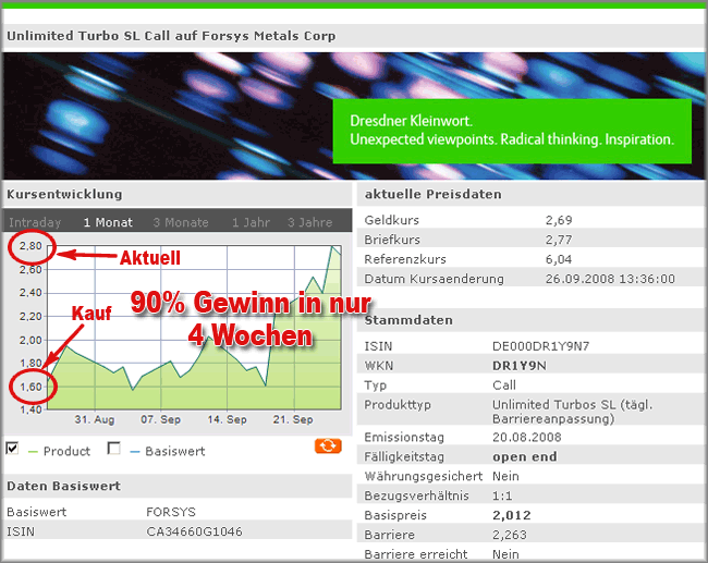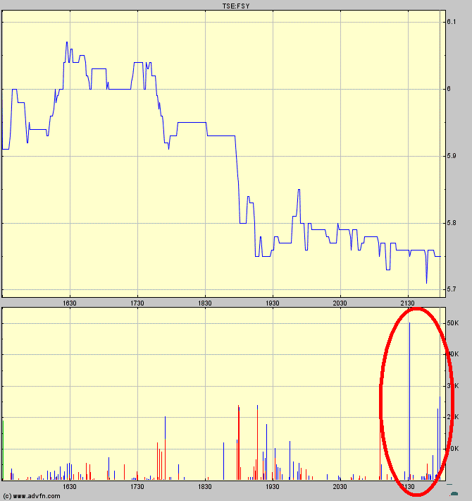 Als erstes fällt auf, dass Forsys in Kanada auf Tageshoch geschlossen hätte, wenn nicht noch einige Ministücke ins Bid