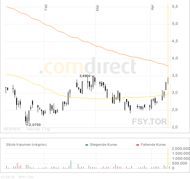 Relative Stärke zeigt seit einigen Tagen Forsys Metals. Hier sind eindeutig kanadische Käufe zu verzeichnen. Gelingt der Break über die 3,50 CAD, winken hier sogar schnell Kurse von 4 CAD!