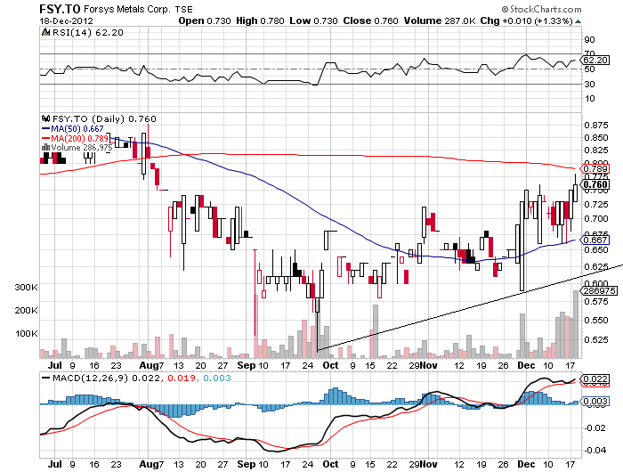 At press time Forsys was trading at 64¢ a share within a 52-week range of 51¢ to $1.14. The company has 110 million shares outstanding.